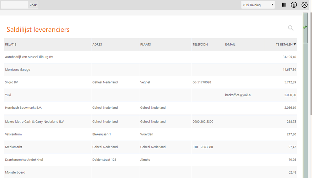 In Yuki, you can view an overview that shows the outstanding amount of unpaid invoices per supplier.