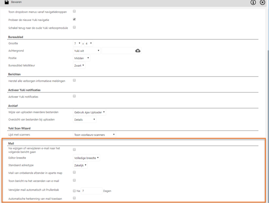 - Automatically delete mail from Recycle bin: after how many days should the Recycle bin be automatically emptied