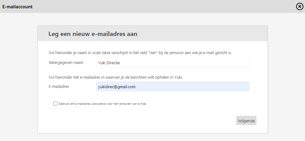 Step 1. Use this e-mail address only for sending e-mail can be ticked, in which case Yuki will not retrieve any email and will use this address only for sending email.