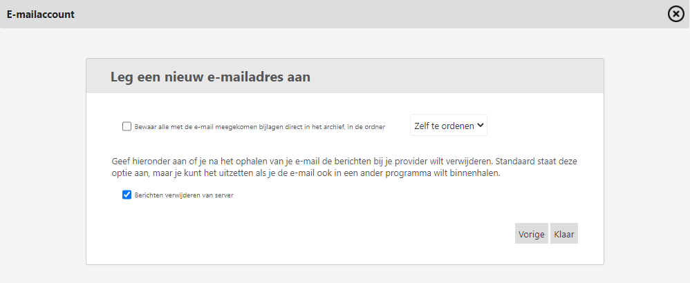 Step 4. Once you've entered your settings, the next screen allows you to specify whether you want all attachments included with the email to be saved directly to the archive. You can choose between the "To be handled by Yuki" folder or the "Tp be filed by me" folder. You can also choose to have your messages deleted from the server after you receive them, but only if your provider allows this.