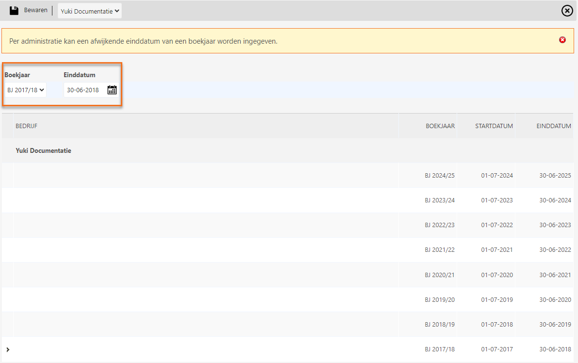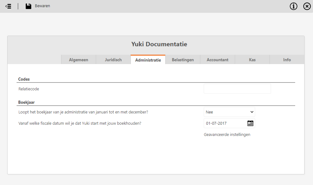 - Under From which fiscal date do you want Yuki to start your accounting? specify the date (01-07-2017) on which the broken financial year starts.