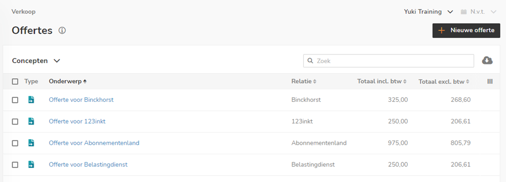 In Yuki, it is possible to manually create quotations and then send them by mail or email to your potential customers.