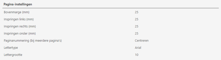 - Page numbering (for multiple pages): Position of the page number at the bottom of each page.