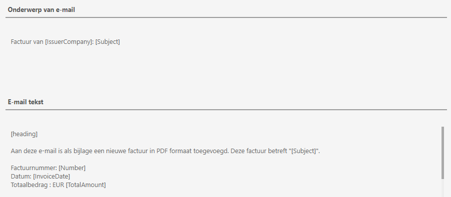 If you decide to send sales invoices by email, you can also customize the email subject and text here.