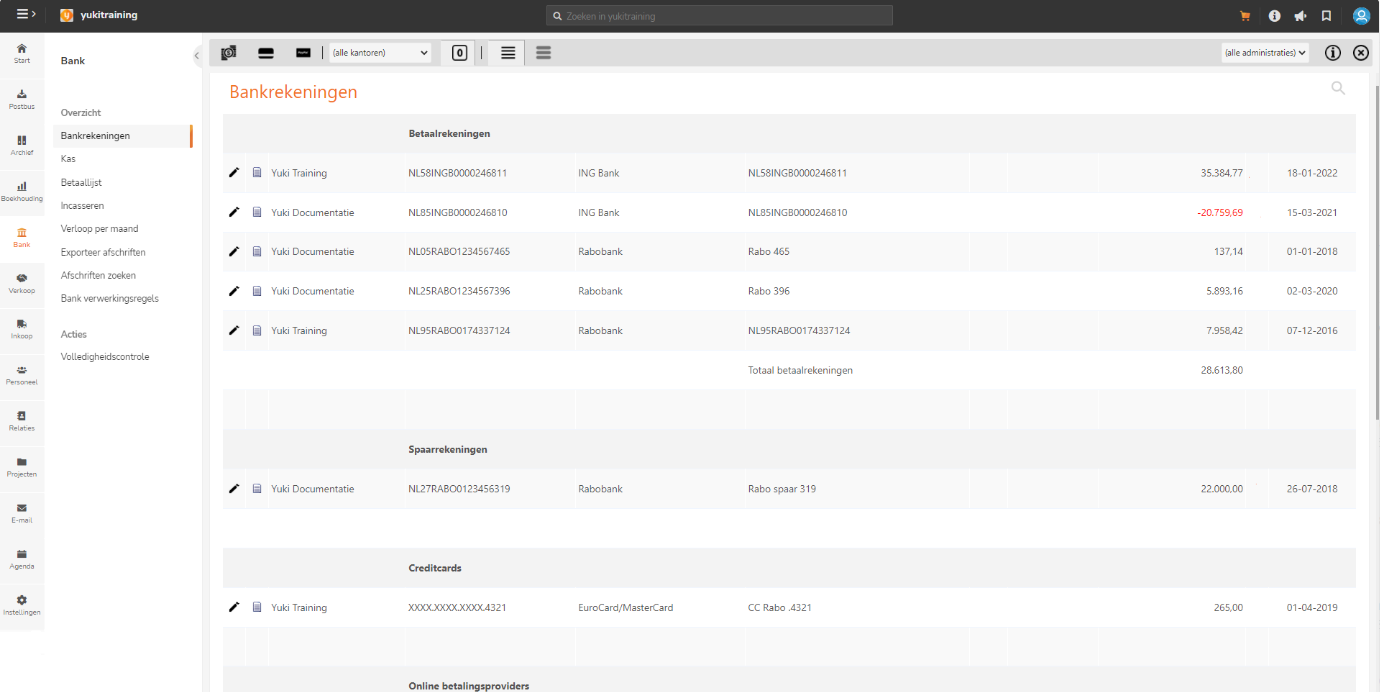 In this overview you will find all corporate bank accounts, credit cards and online payment providers of all administrations i a domain.
