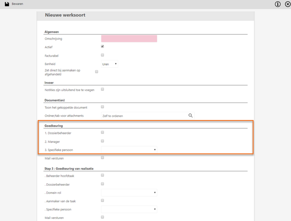 If you select Send mail in the screenshot below, a notification email will be sent to one of the persons who may approve the activities. If nothing is entered in point 1. the mail will go to 2. or 3. respectively.