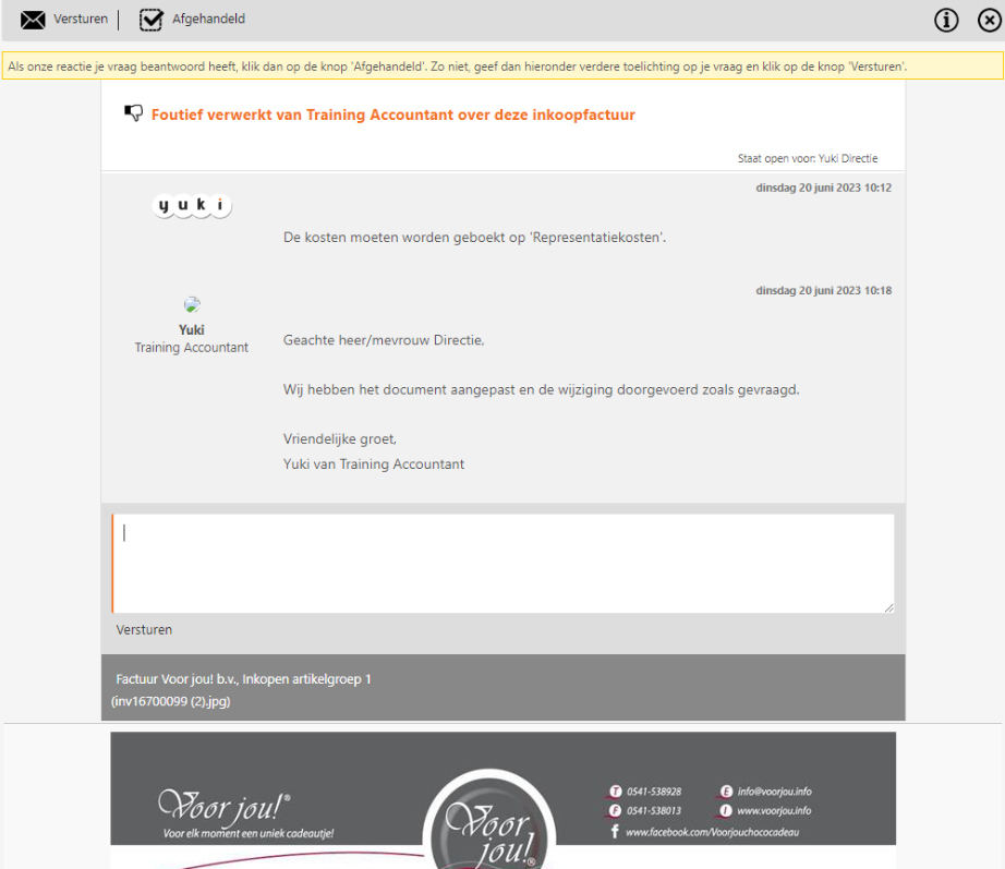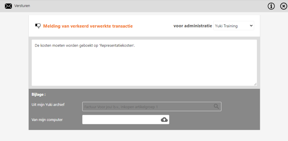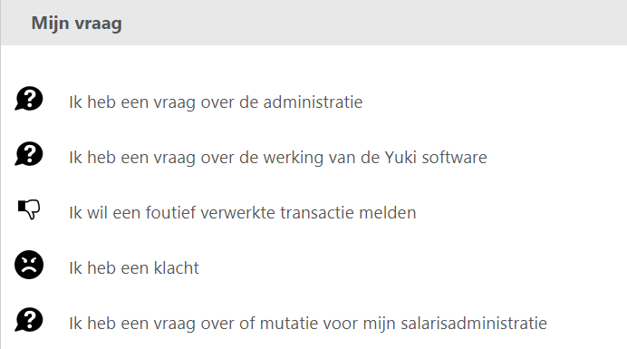 ask a question about the functioning of the Yuki software (will be assigned to the Yuki Support team)