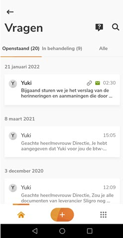 With the Yuki Assistant app for your smartphone, as an entrepreneur, you have direct access to your own domain with one or more administrations in Yuki.