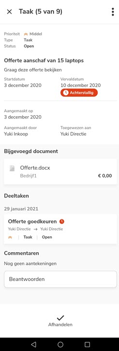 In addition to being added from the Yuki Archive, a document can also be added to a task from a folder on your smartphone, from the Gallery, or by taking a photo.