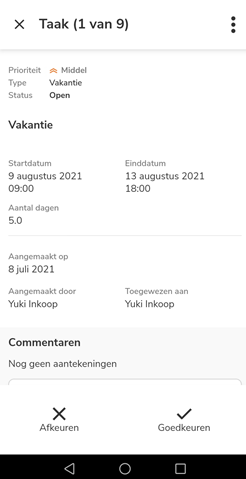 Every employee can create an absence registration in Yuki. When a manager has been assigned to an employee, this manager must approve or reject each new absence registration.
