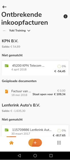 - the uploaded purchase and/or sales invoices that have not yet been matched with a payment.