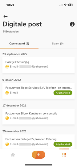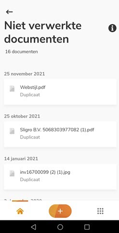 This list is a signal list! All documents received will be processed by your accountant in the administration. The documents that have already been processed in your administration have the status 'Processed'.