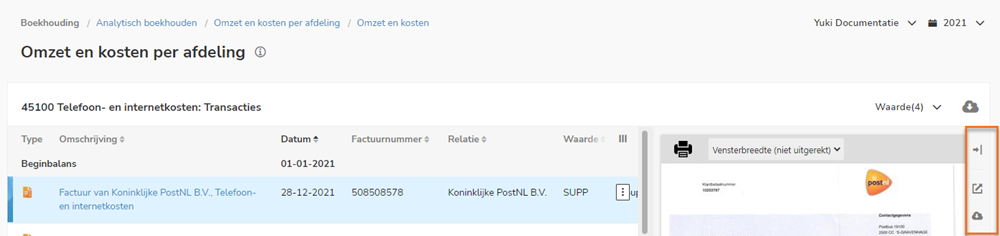 Click on the relevant invoice line and then on the Show / Hide button (icon with a right / left arrow) to show or hide the document preview on the screen.