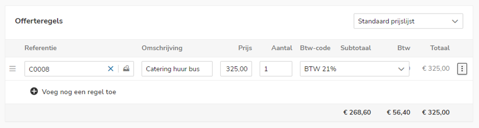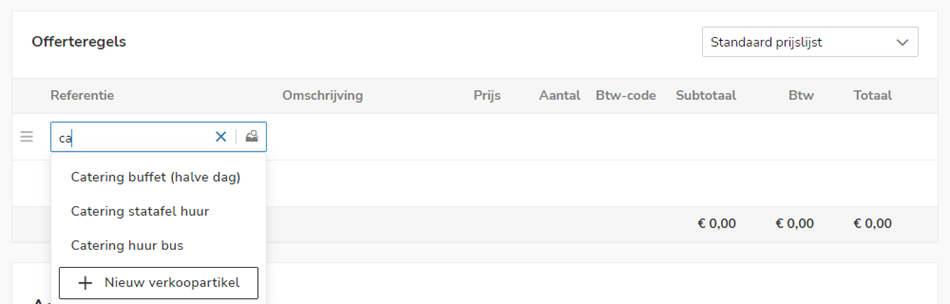 For a detailed description, see article Create sales item.- The details of the item such as the description are automatically filled in on the quotation line.