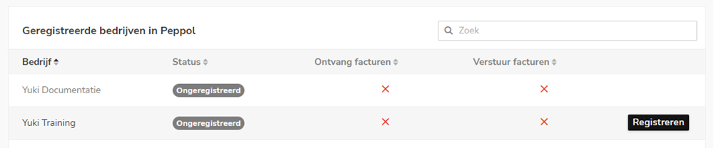 - An administration can only have one so-called Access Point to Peppol. Thus, in order to register the administration with Peppol via Yuki, the administration must first be deregistered from the existing Access Point, if applicable.