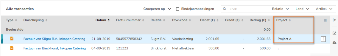 To see which transactions are linked to which project, click on the column selector and then choose the Project column.