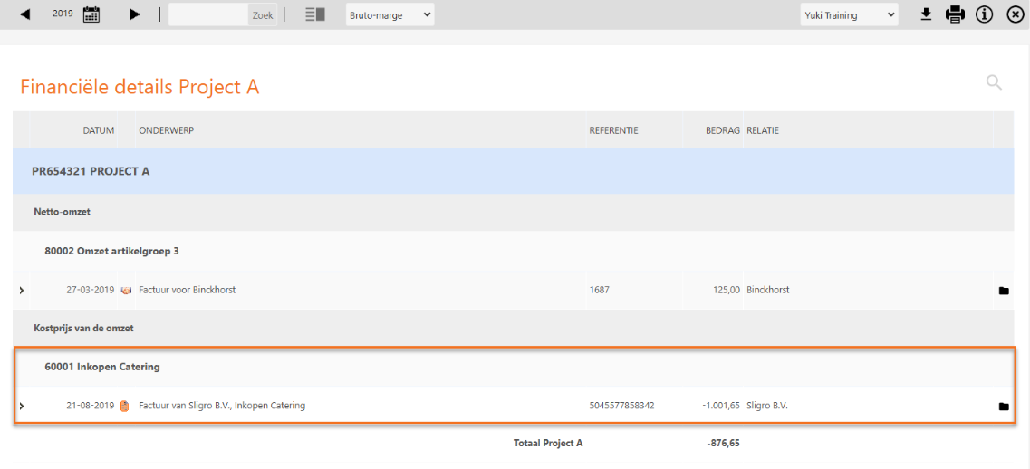 You can find the linked transactions for the invoice in the project in the Financial details and Profit and loss overviews.