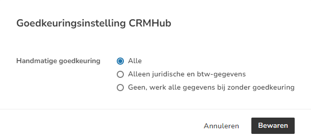 For a detailed description of manual approval, see article Connect CRMHub with administration and update customer data.