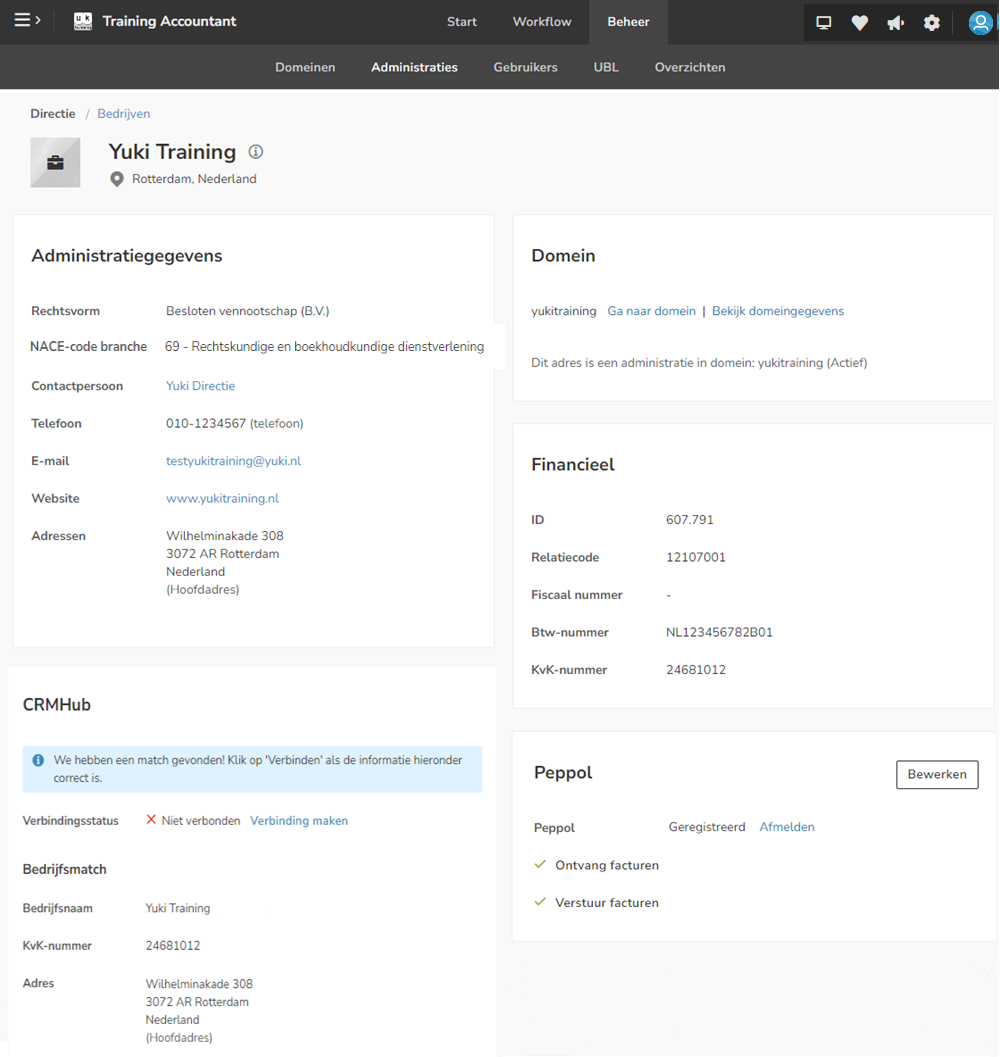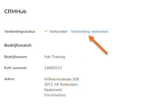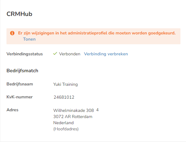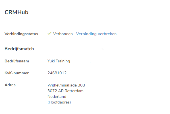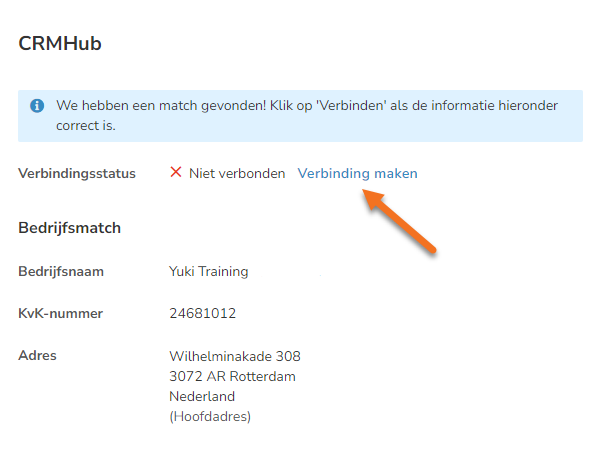 Yuki searches for a match based on the Chamber of Commerce number or the VAT number. When a match is found, click on Connect.