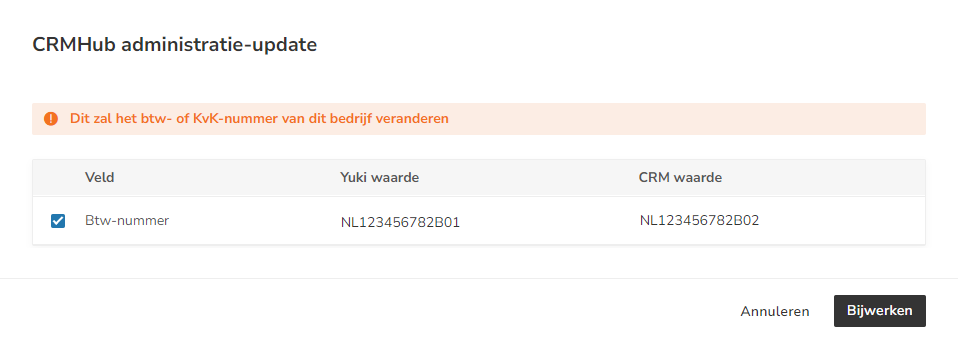Select the customer data (fields) that need to be changed in Yuki and then click on the Update button.