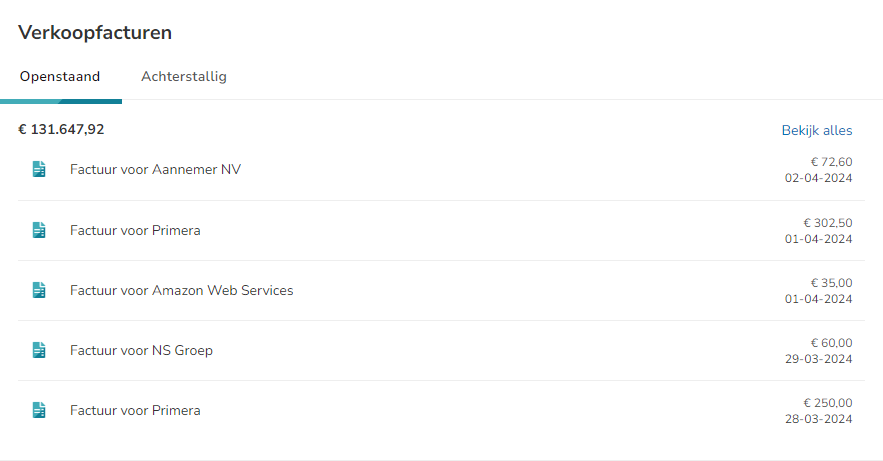 Here you can see outstanding (not yet paid or collected) sales invoices or overdue (outstanding to be reminded) sales invoices.