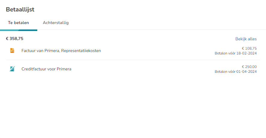 - Payment list: overview of payable and overdue documents
