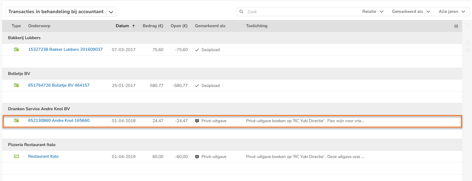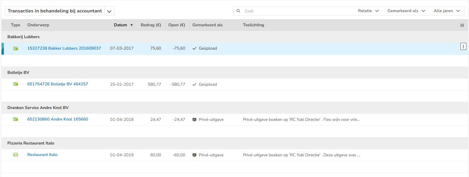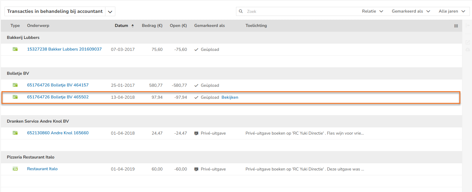In this view, you see the outstanding payments for which you have indicated that you have uploaded the missing invoices or marked them as private expenses or business expenses.