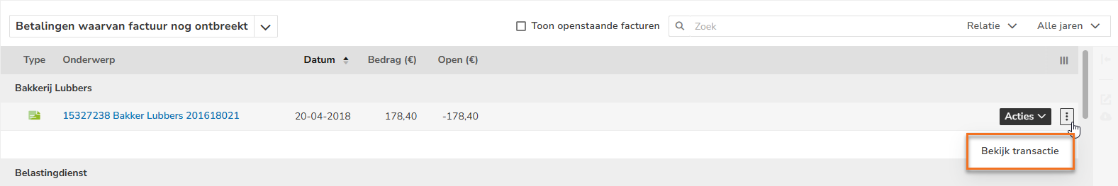 This overview is opened by default in the Payments for which invoice is still missing view.