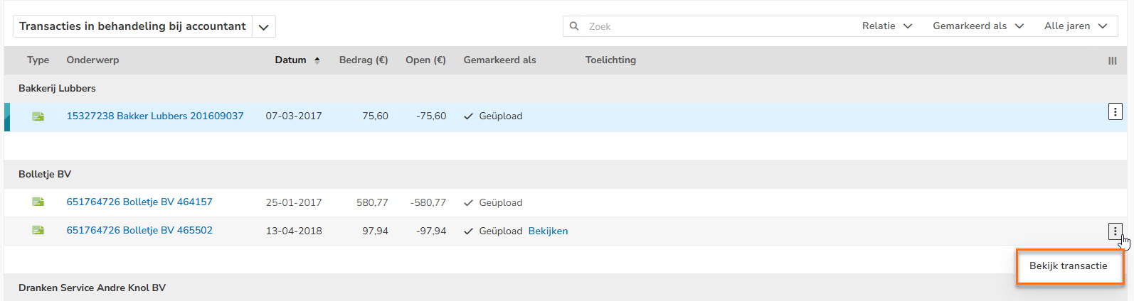 As long as the accountant has not processed the document, the document will have the status 'Waiting to be processed'.
