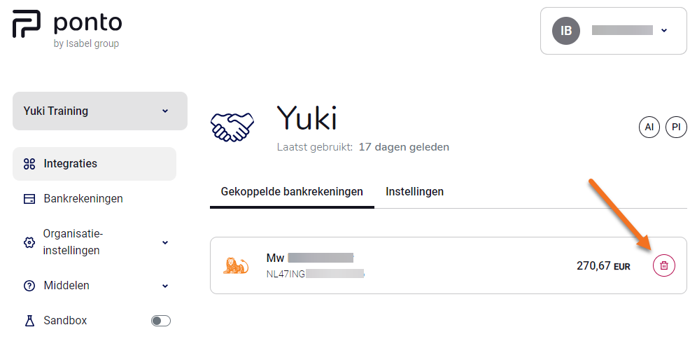 You have authorized in Ponto the bank account to share transactions from your Ponto account with Yuki, but have not yet completed the link in Yuki. You will be charged €1.00 per month for this authorized bank account if you do not remove the relevant bank account from your Ponto profile.