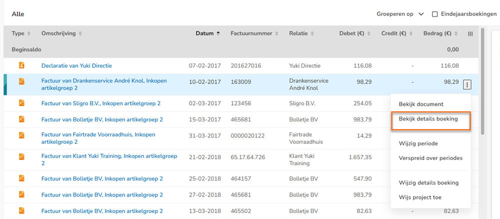 - change transaction details (invoice number, VAT code and/or general ledger account)