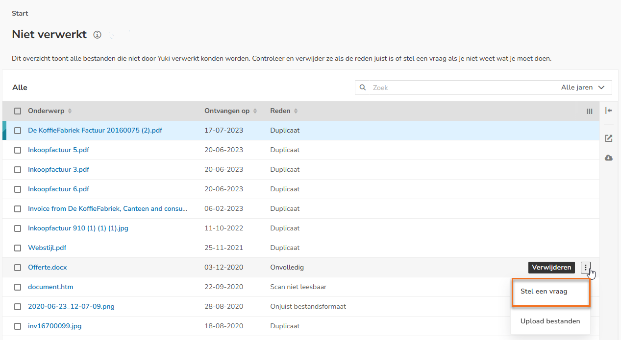 It can happen that certain documents or files you send to Yuki cannot be processed by the back office. This may be due to a number of reasons: