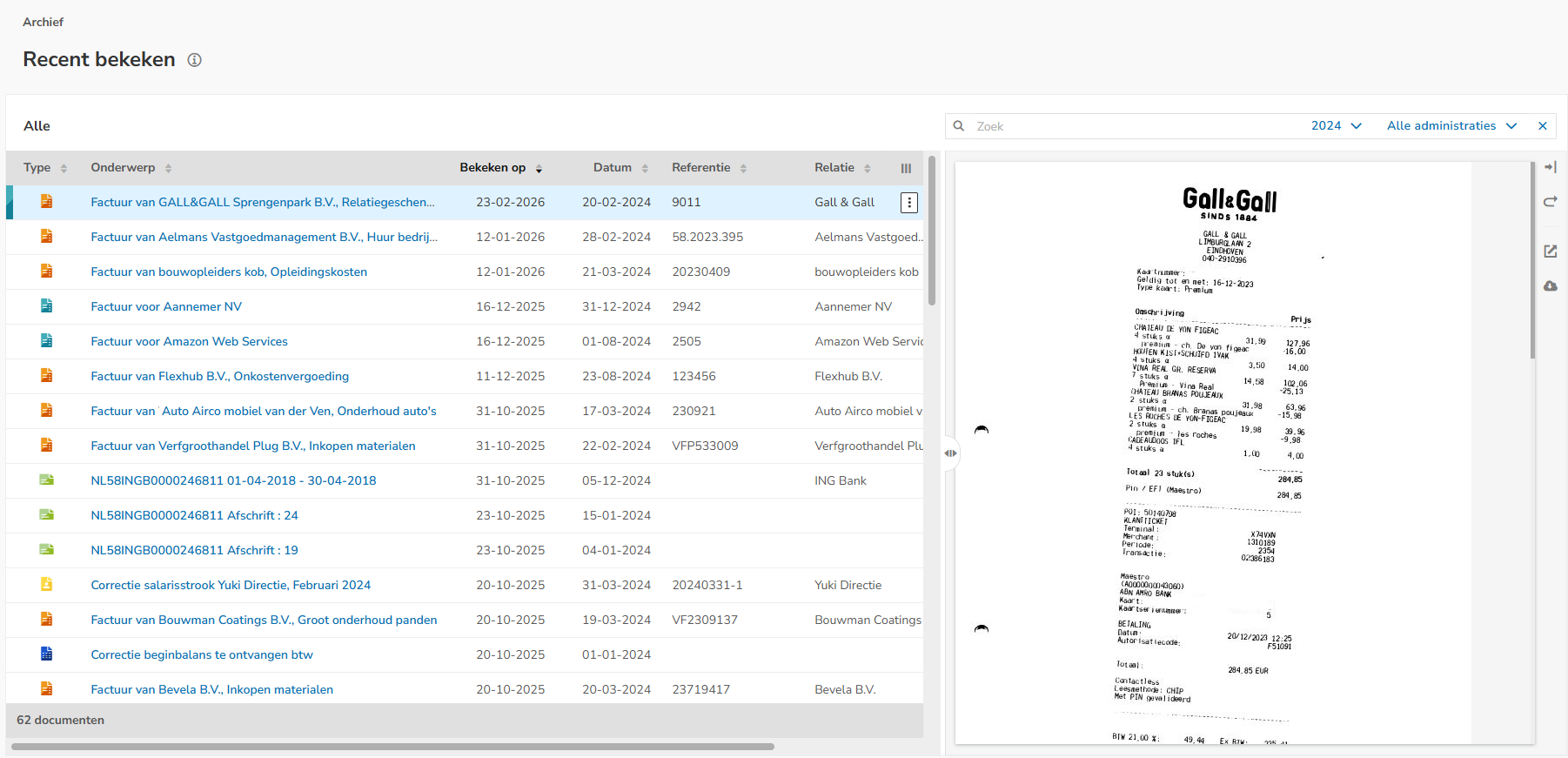 In Yuki, you can view a list of documents you have recently viewed. This is useful if you want to open a document again.