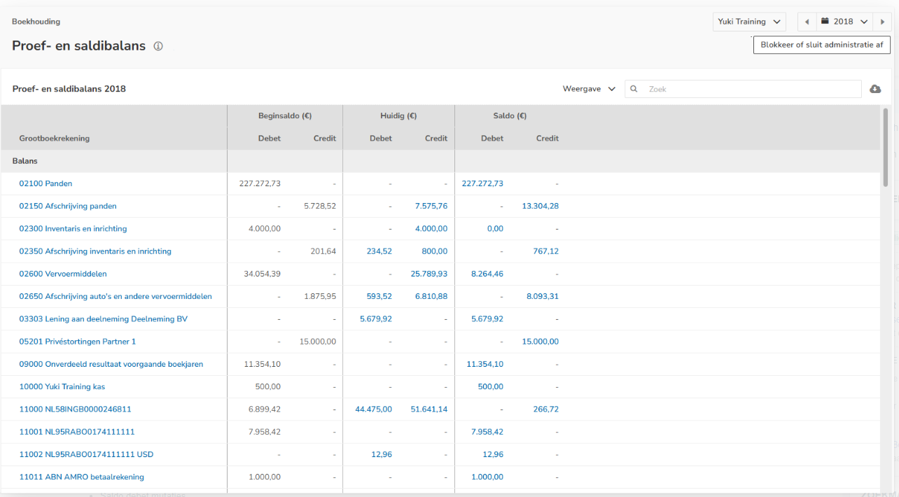 The trial balance in Yuki is the starting point for checking the individual GL accounts.