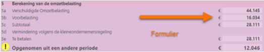 This also creates a difference in the Print form of the VAT return and the normal Form. The Print form is the form that has actually been sent to the tax authorities. The amounts listed here were actually paid.