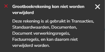 The GL account cannot be deleted if it is still being used in transactions, documents, default values, document processing rules and/or invoice lines.