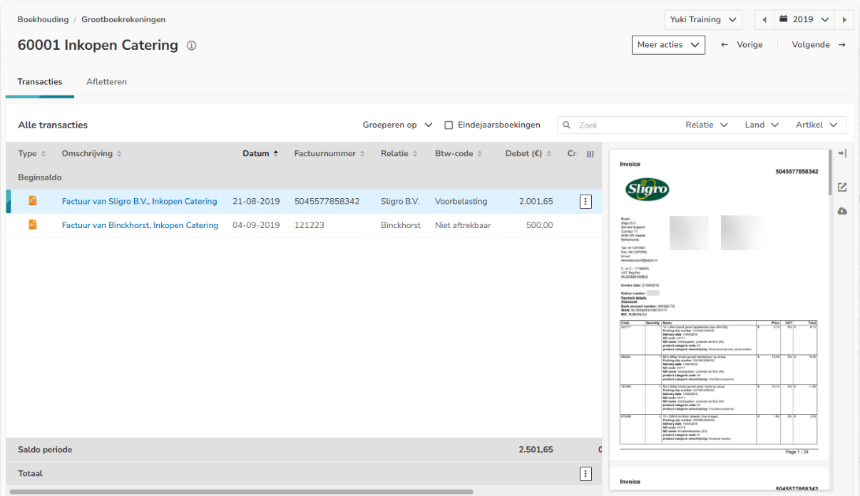 In Yuki, transactions from purchase and sales invoices can be linked to a project from an opened GL account.
