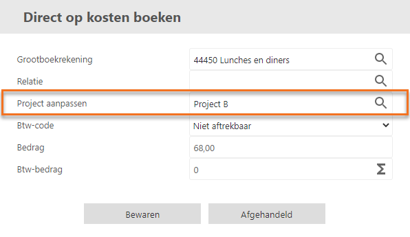 After clicking on the Save or Completed button, the bank transaction is linked to the project.