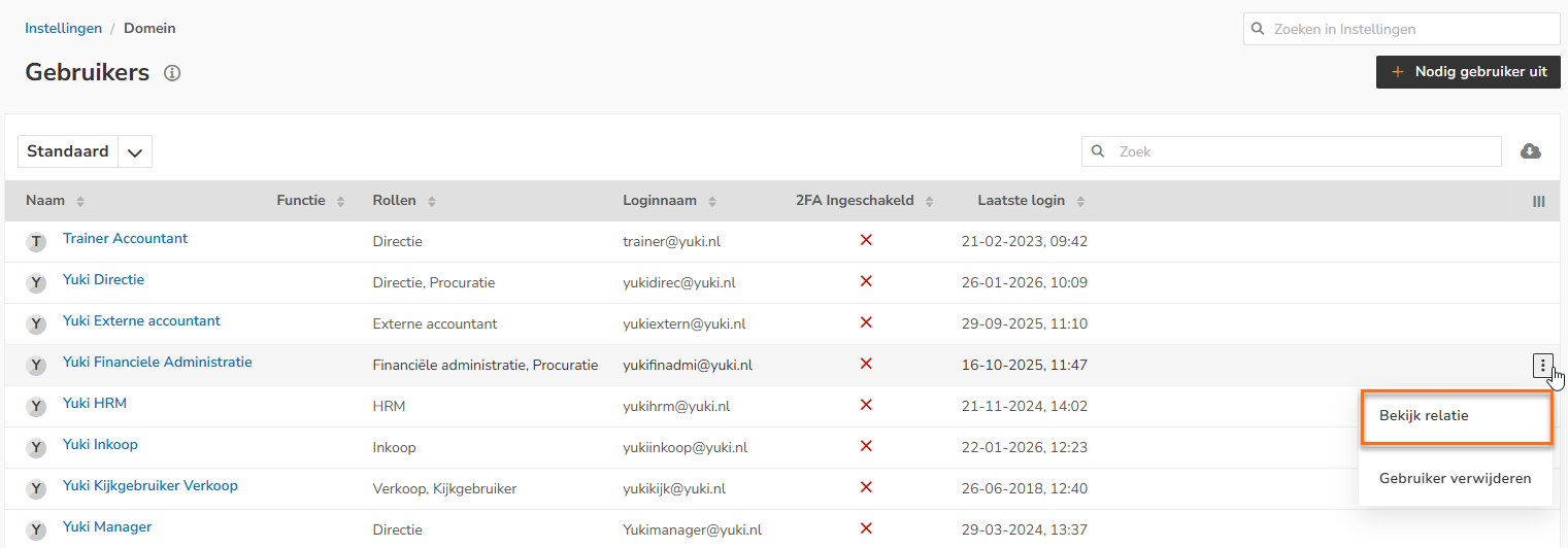 Adding one or more additional users to a domain (extra costs per added user per month) is only available when a user with the 'Management' role has chosen the bundle Medium, Large or Unlimited via the Yuki Store in the domain.