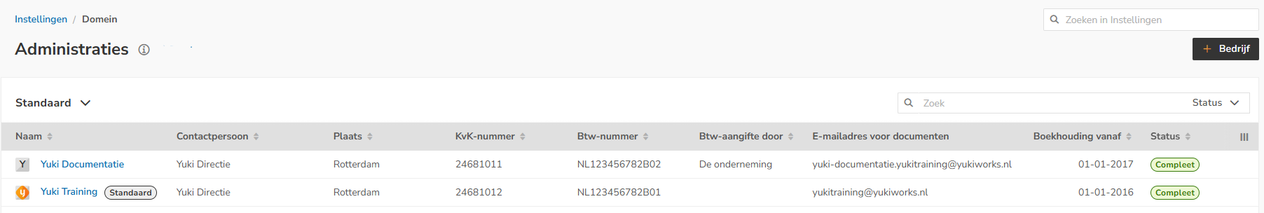 Once a domain has been created, you need to record all kinds of information about the company (or companies) whose administration you will be keeping in this domain. You also need to record a few things about the accounting itself: from when the administration will be done in Yuki, details about VAT, etc. You do all this by recording information about the company in a number of sections: