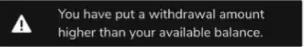 When you enter an amount to be transferred that exceeds the balance in the Yuki Pay checking account, the following message appears at the bottom of the screen.