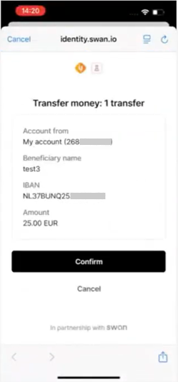 To confirm the transfer, click on the Confirm button in the now-opened screen.