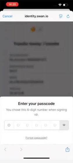 Now enter the 6-digit passcode that you use to definitively confirm the transfer from the Yuki Pay checking account.