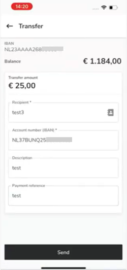 Enter the amount you want to transfer and then select the beneficiary's bank account.