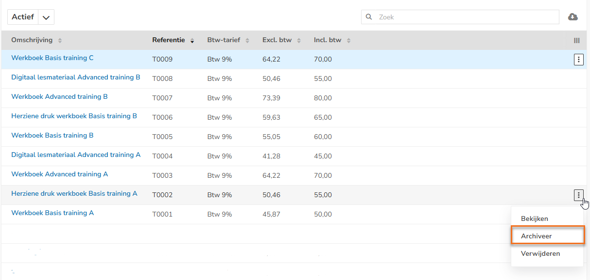 The archived sales item has now disappeared from the active sales items overview and is now in the archived sales items overview.