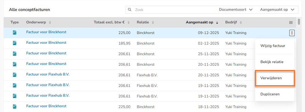 In Yuki, you can view an overview of all sales invoices that have been created but cannot or should not be sent to your customers yet.