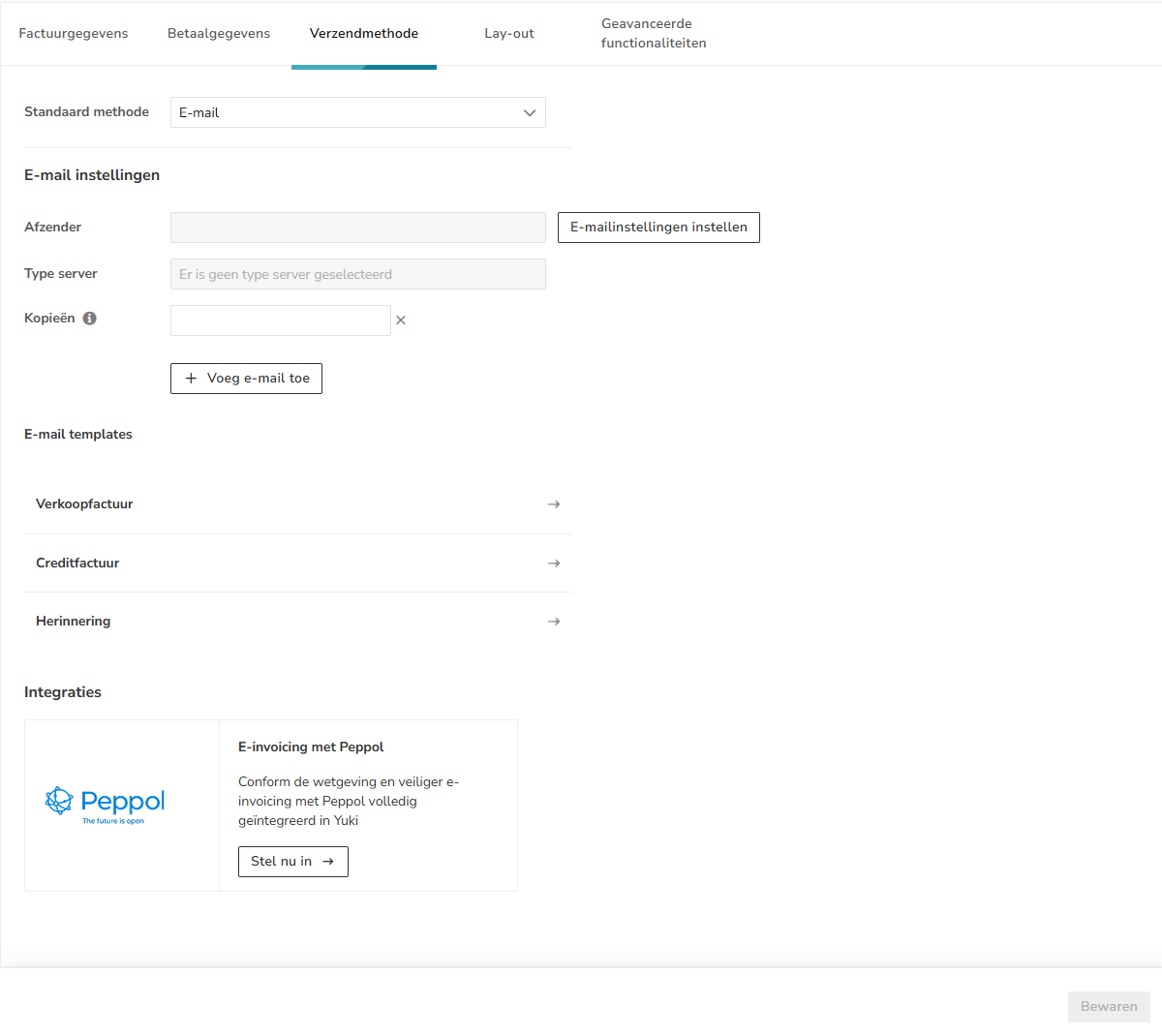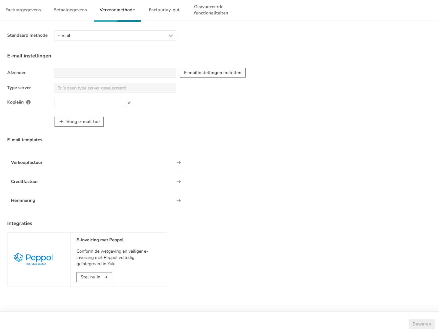 - Peppol: depending on the customer-specific setting, registration with Peppol and the presence of an email address, it is determined whether the invoice is sent via Peppol, by email or manually.