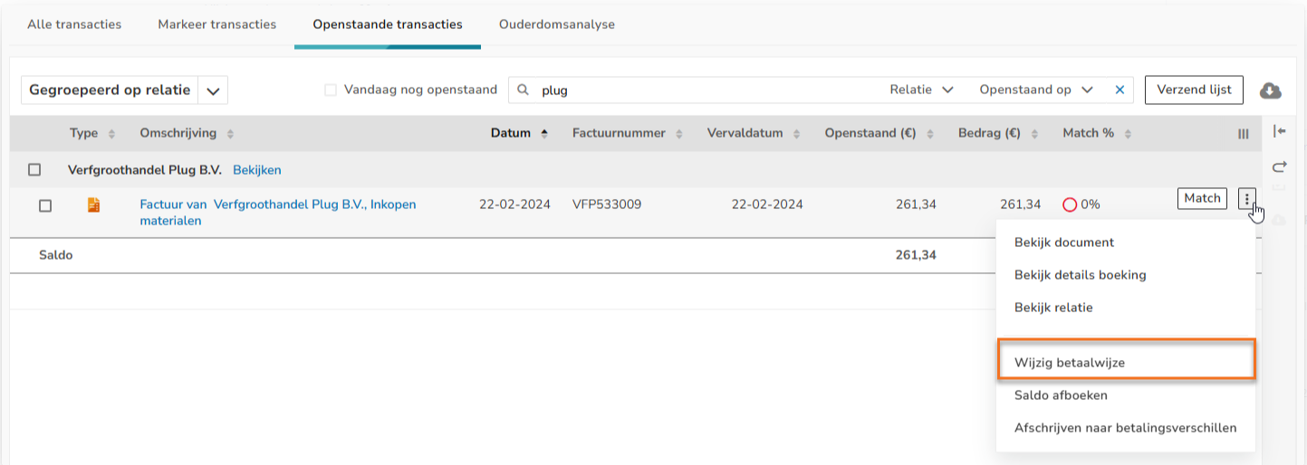 To check and change outstanding items (debtors, creditors or CA employees), you can use a number of specific post-editing functions for invoices and bank transactions.