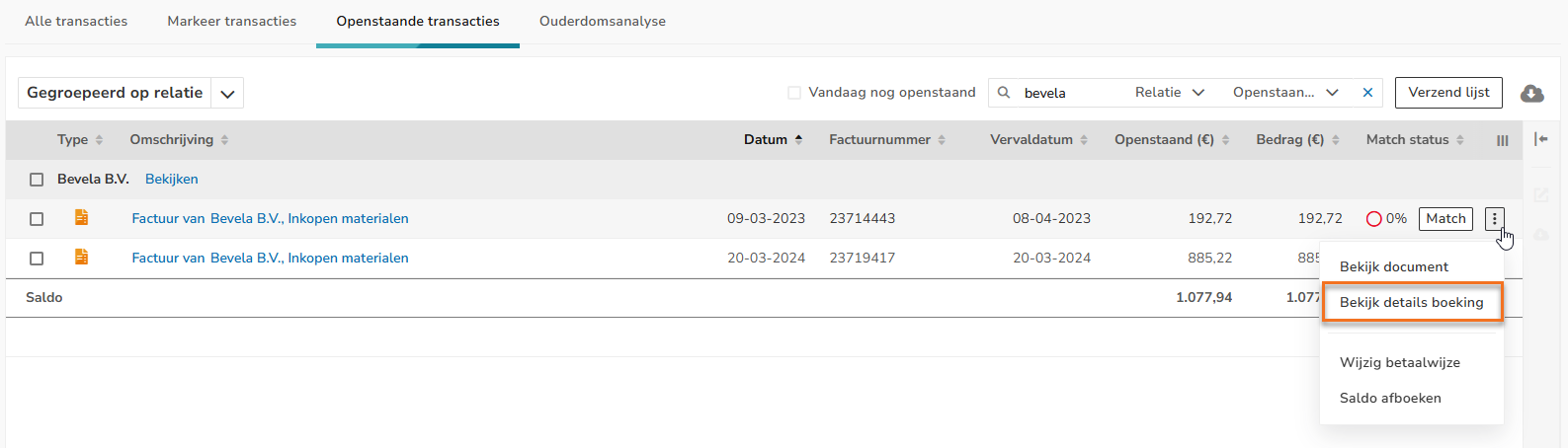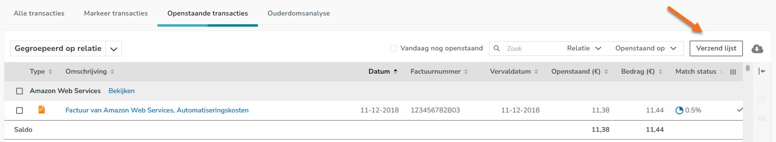 In the 'Outstanding transactions' overview, you can view all outstanding items for creditors, debtors, or CA employees. These outstanding items are in Yuki: