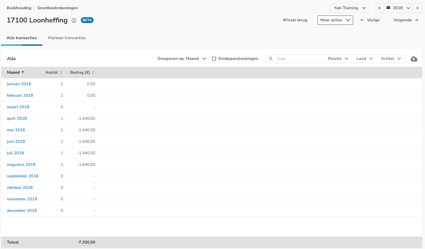 Here, at the monthly level (Grouped by: Month), the reconciliation between the payroll tax assessment and the payroll journal entry per month is checked. Of course, it is important that the monthly payroll journal entry and the payroll tax assessment are present.